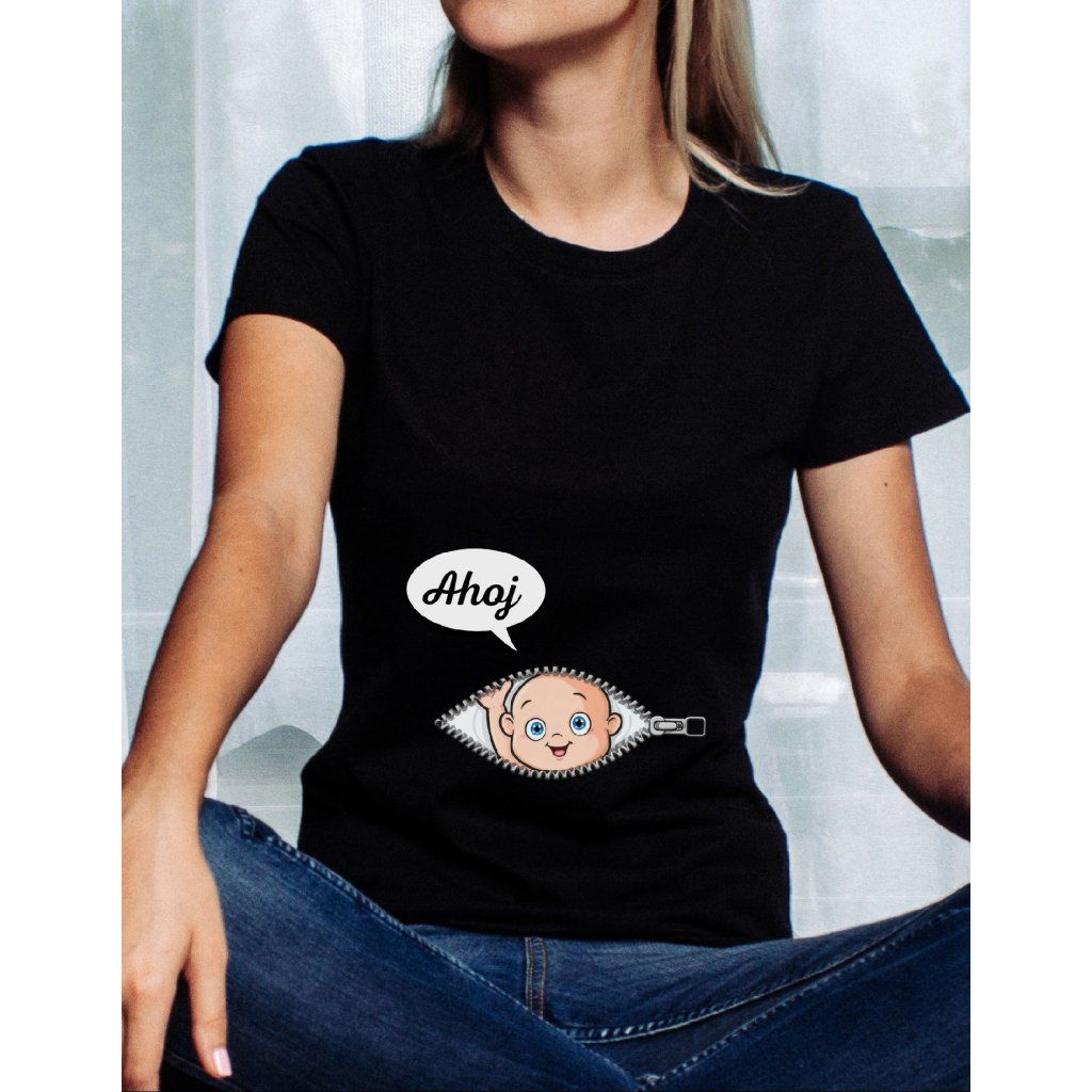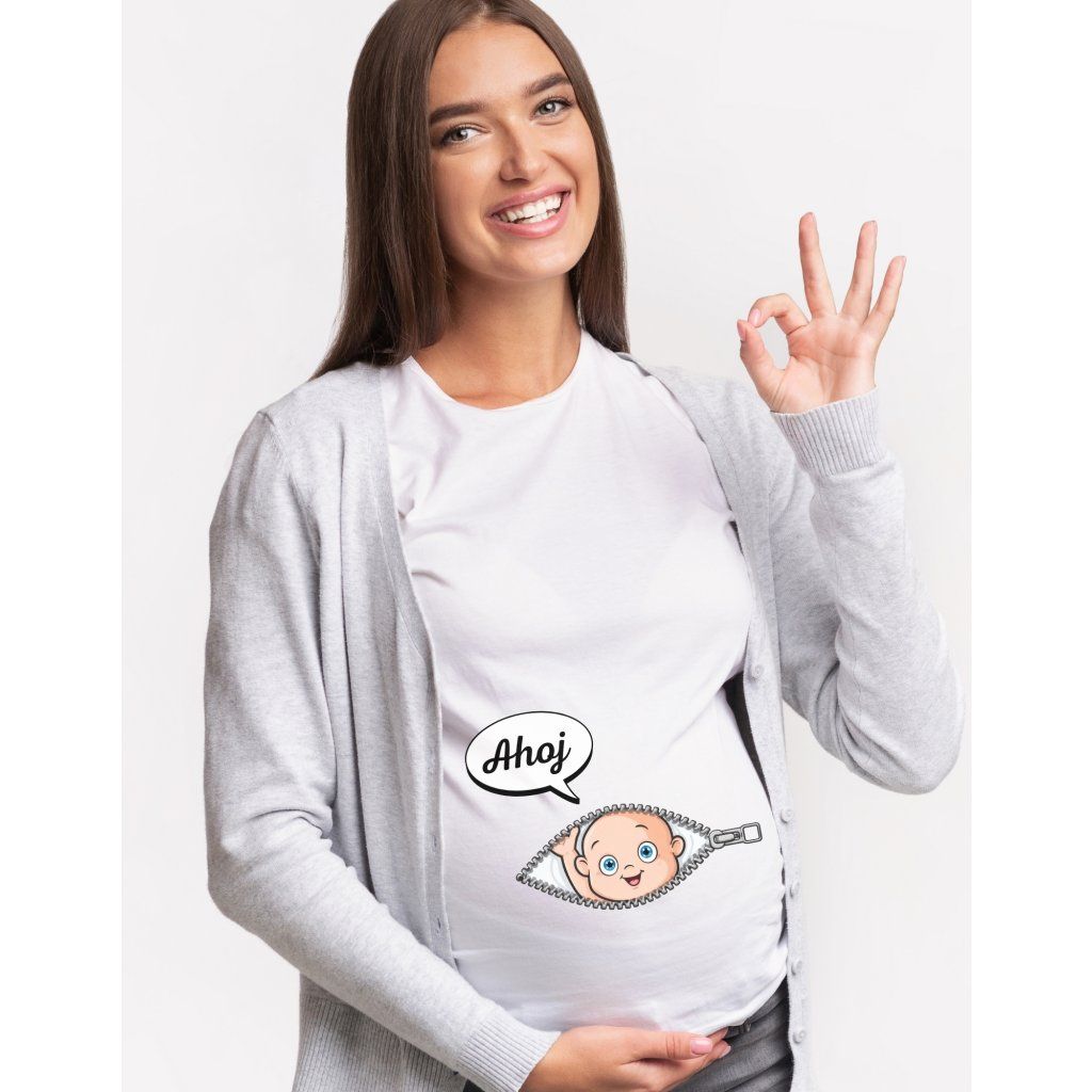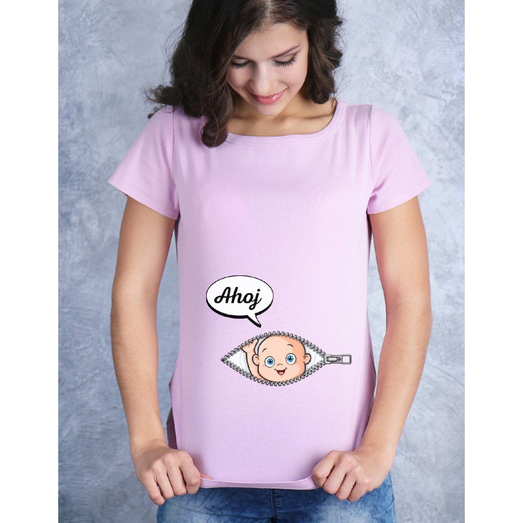 tričko těhotenství, tričko ahoj maminko, tričko miminko bříško, vtipné tričko těhotná, dámské tričko těhotenství, dárek pro těhotnou