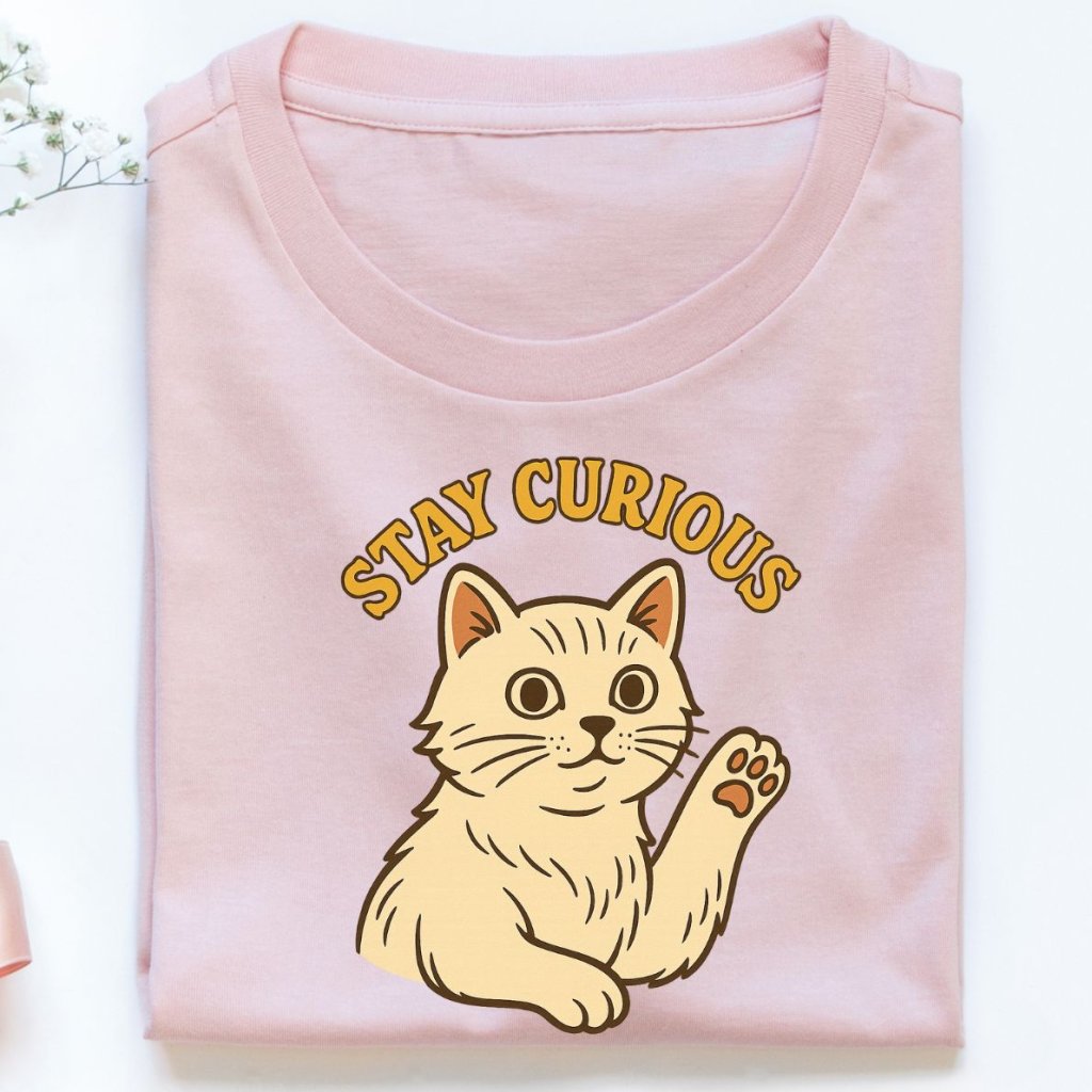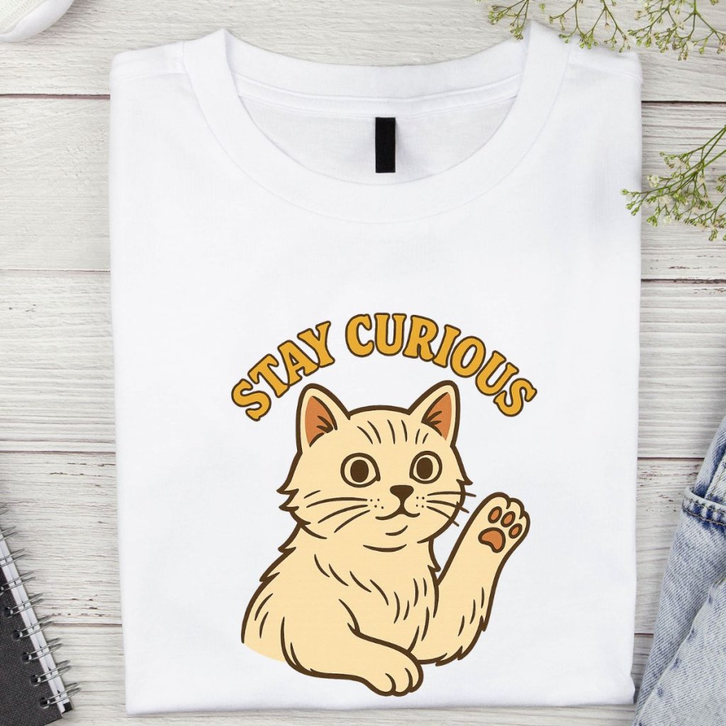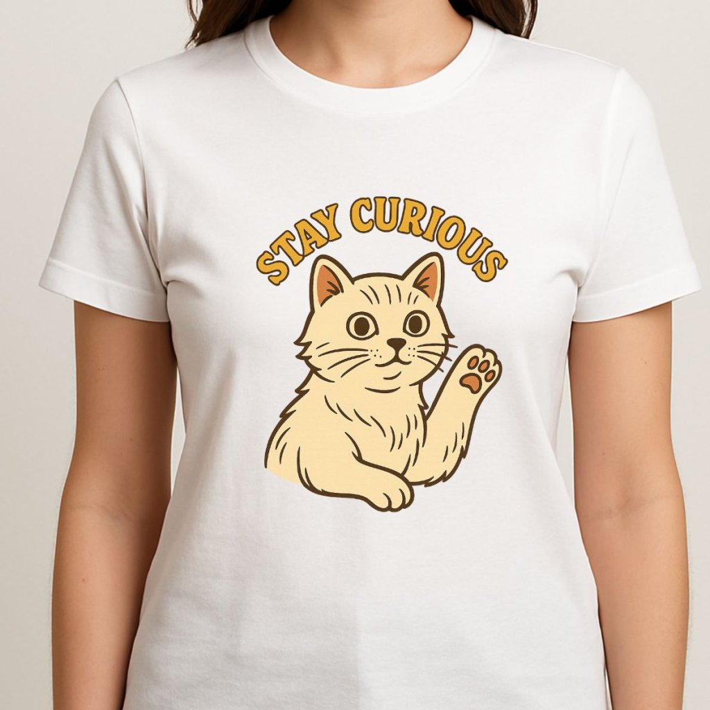 Triko s motivem Stay curious a motivem kočičky má hmotnost 160 g/m2 (ideální střední gramáž) a je tedy vhodné na běžné, každodenní nošení. Tričko je vyrobeno z kvalitní 100% bavlny, která je příjemná na dotek i odolná. Toto triko pro ženy rovněž disponuje kvalitním elastickým potiskem, který se nachází na přední straně trička.