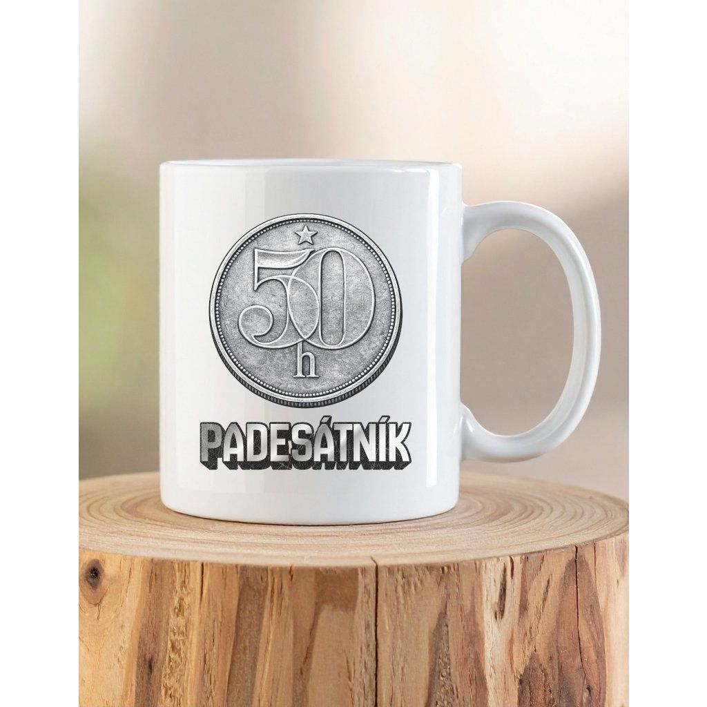 hrnek padesátník, hrnek 50tník mince, hrnek 50 narozeniny muž, vtipný hrnek 50, retro hrnek mince, dárek k padesátinám