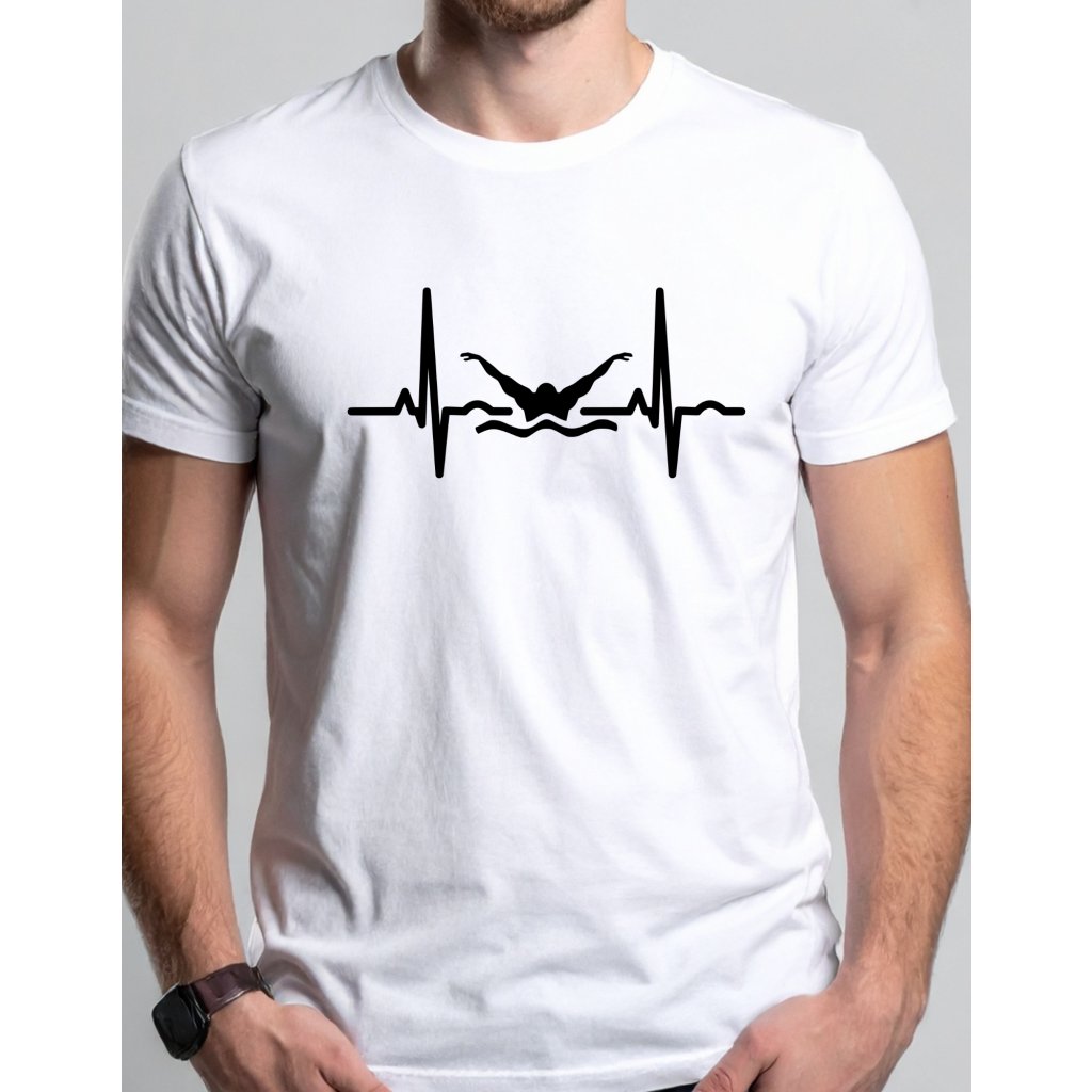 Stylové pánské tričko s motivem EKG křivky, která přechází v siluetu plavce, je ideální pro všechny muže, kteří milují plavání. Originální design symbolizuje, že voda a plavecký sport jsou pro mnohé doslova srdeční záležitostí.