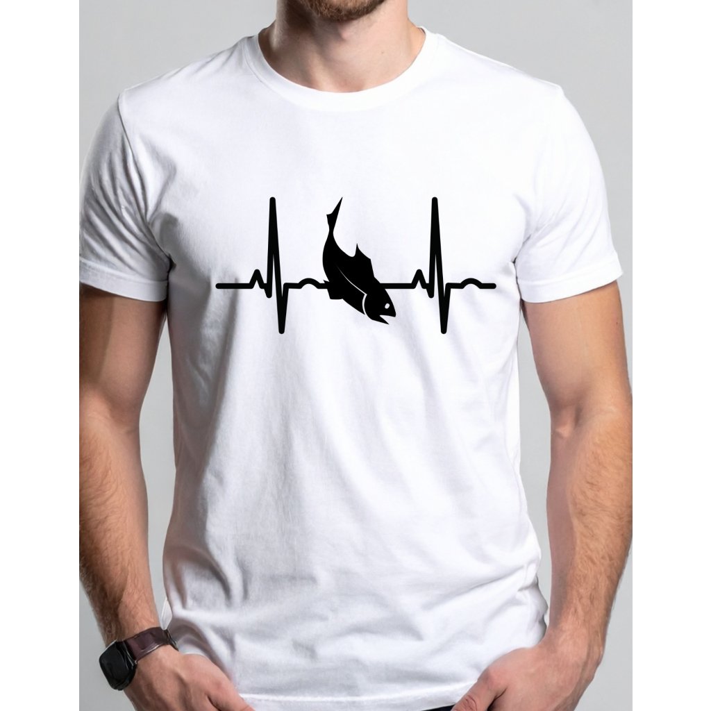 Stylové pánské tričko s motivem EKG křivky, která přechází v siluetu ryby, je ideální pro všechny muže, kteří milují rybaření. Originální design symbolizuje, že rybaření je pro mnohé rybáře skutečnou srdeční záležitostí.
